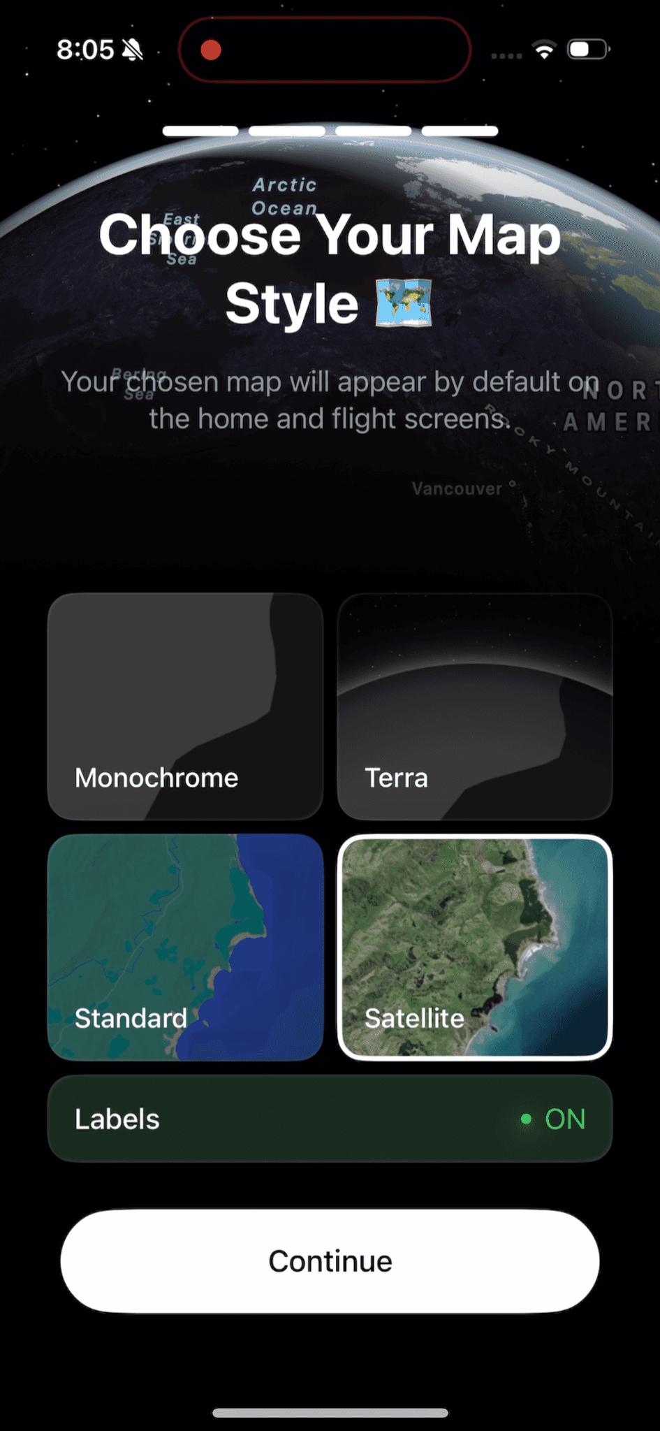 The flow makes the user select the departure airport and quickly prompts the user to subscribe while selecting the arrival airport.