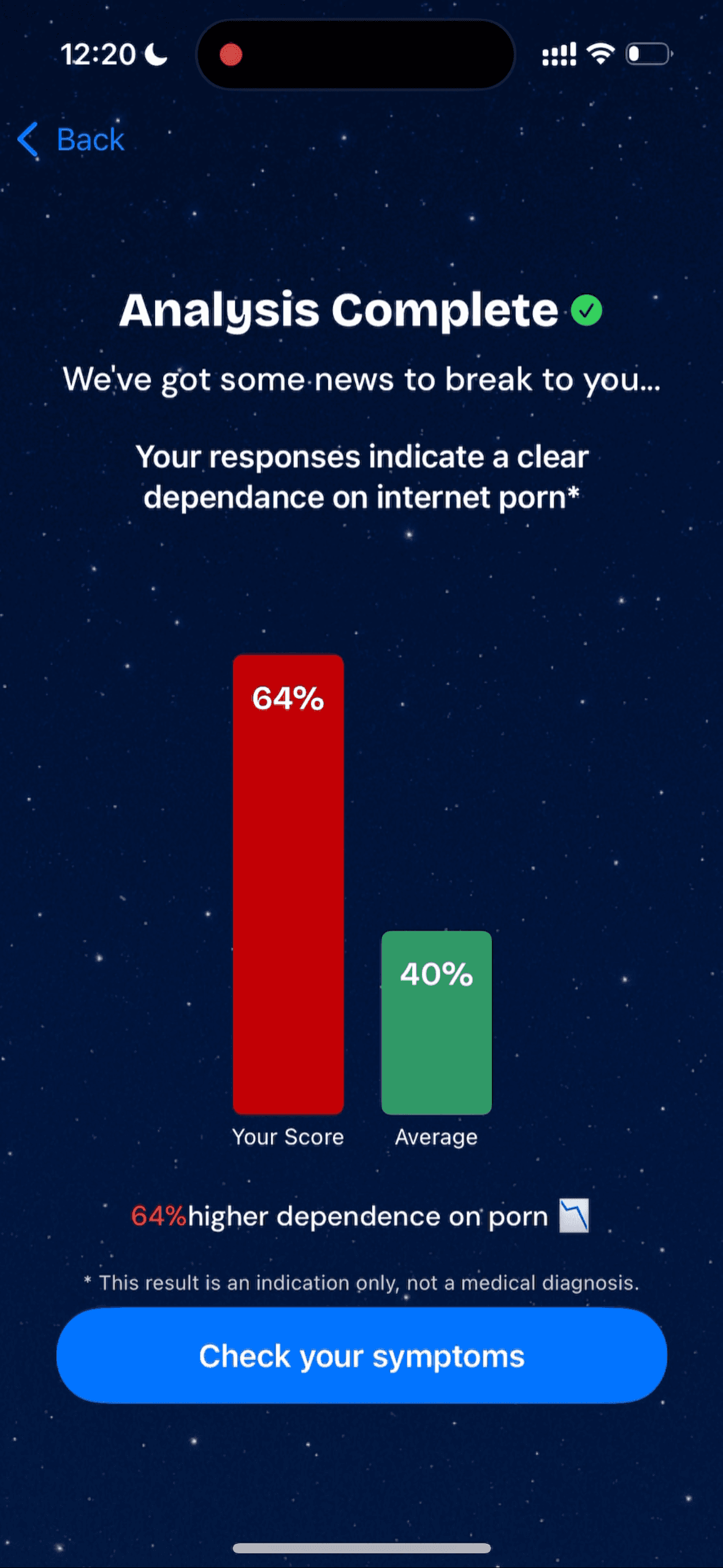 All those questions are not for nothing. They calculate an insight based on user choices. And for some reason, they will always show a dependance on internet porn :P.