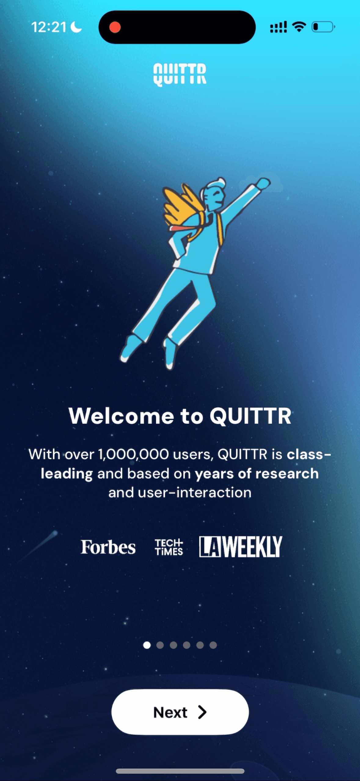 At this point, Quittr sets themselves as dependable guides by showing their awards, and huge base of users, and also by quoting popular health influencers.