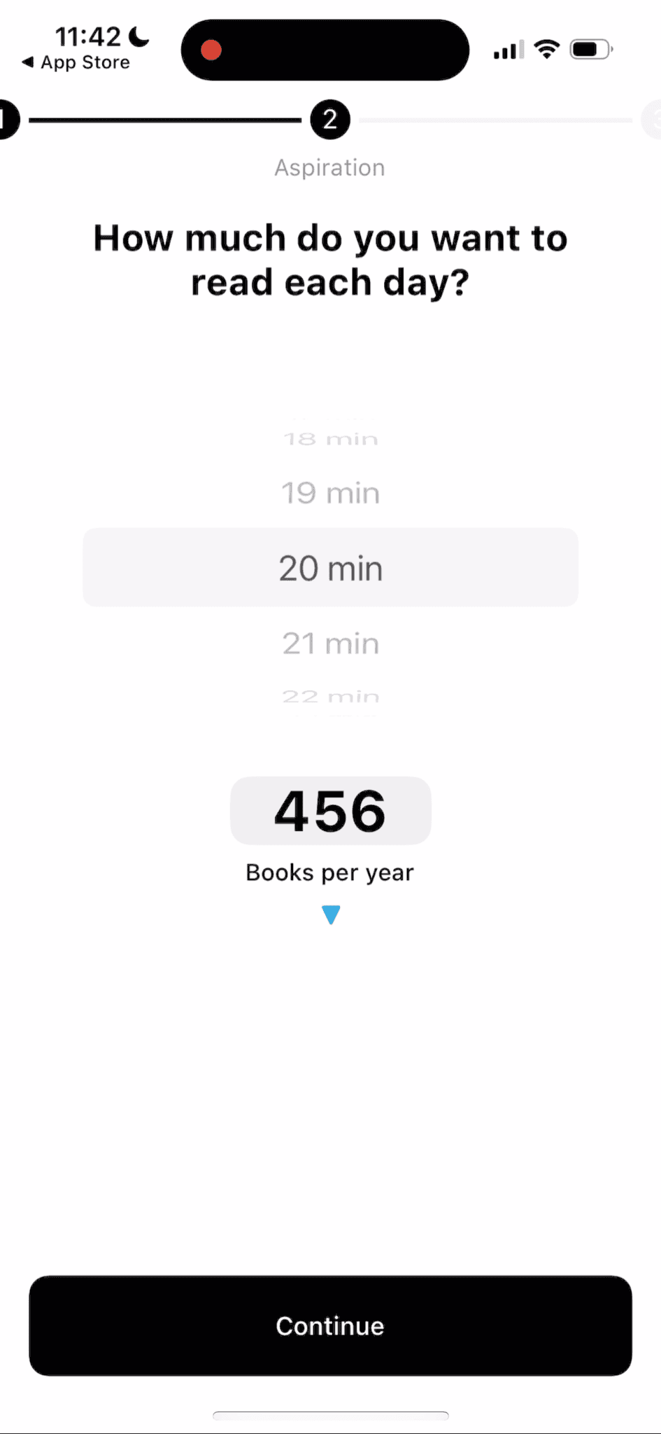 That's a niche way to let users visualise a success state. Brilliant use of feedback in gamification. Users can play around around see their reading outcomes over a year. 456 books a year by reading 20 mins daily? Mindblown.