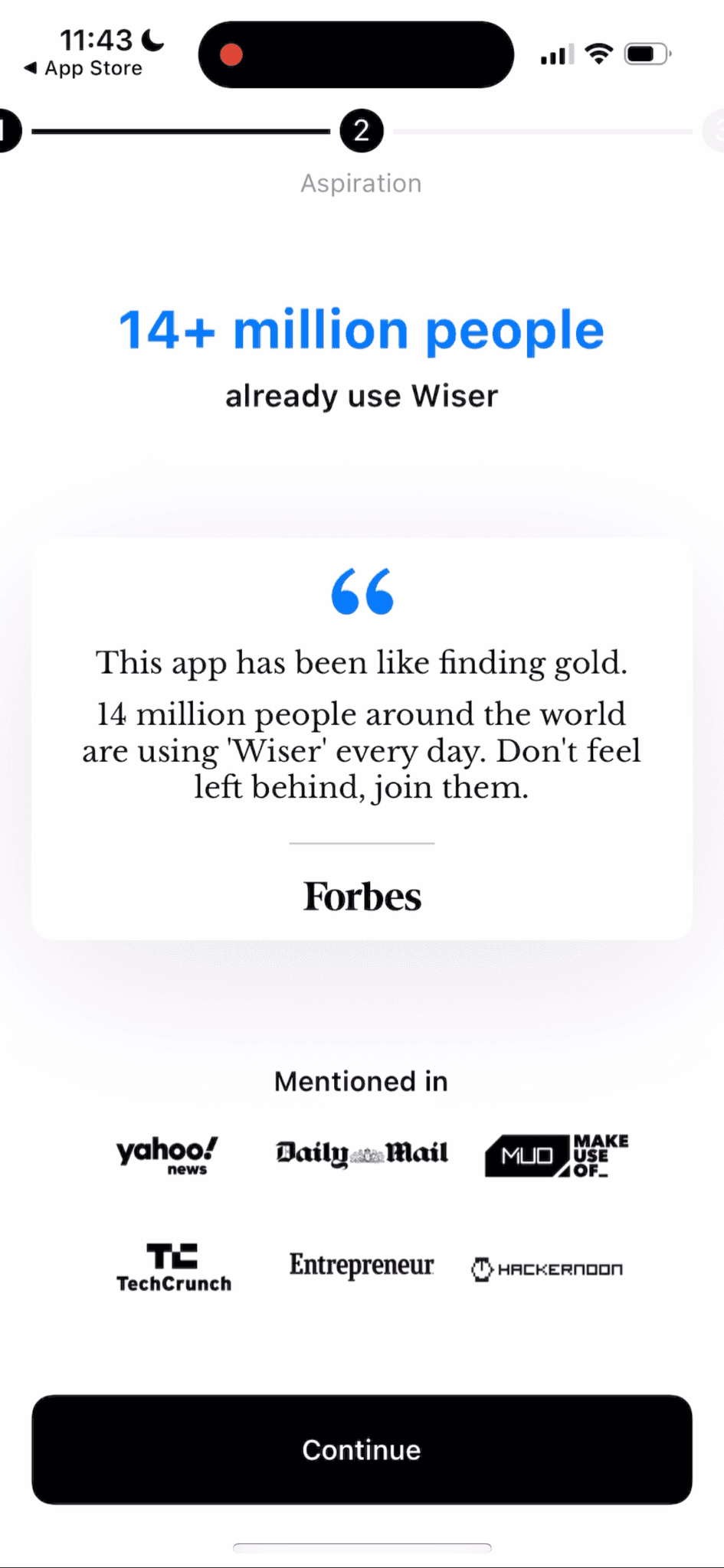 Straight up to showing achievements and testimonial. Never really seen this on any app, screaming how good they are, but again they do them. If it works, great.