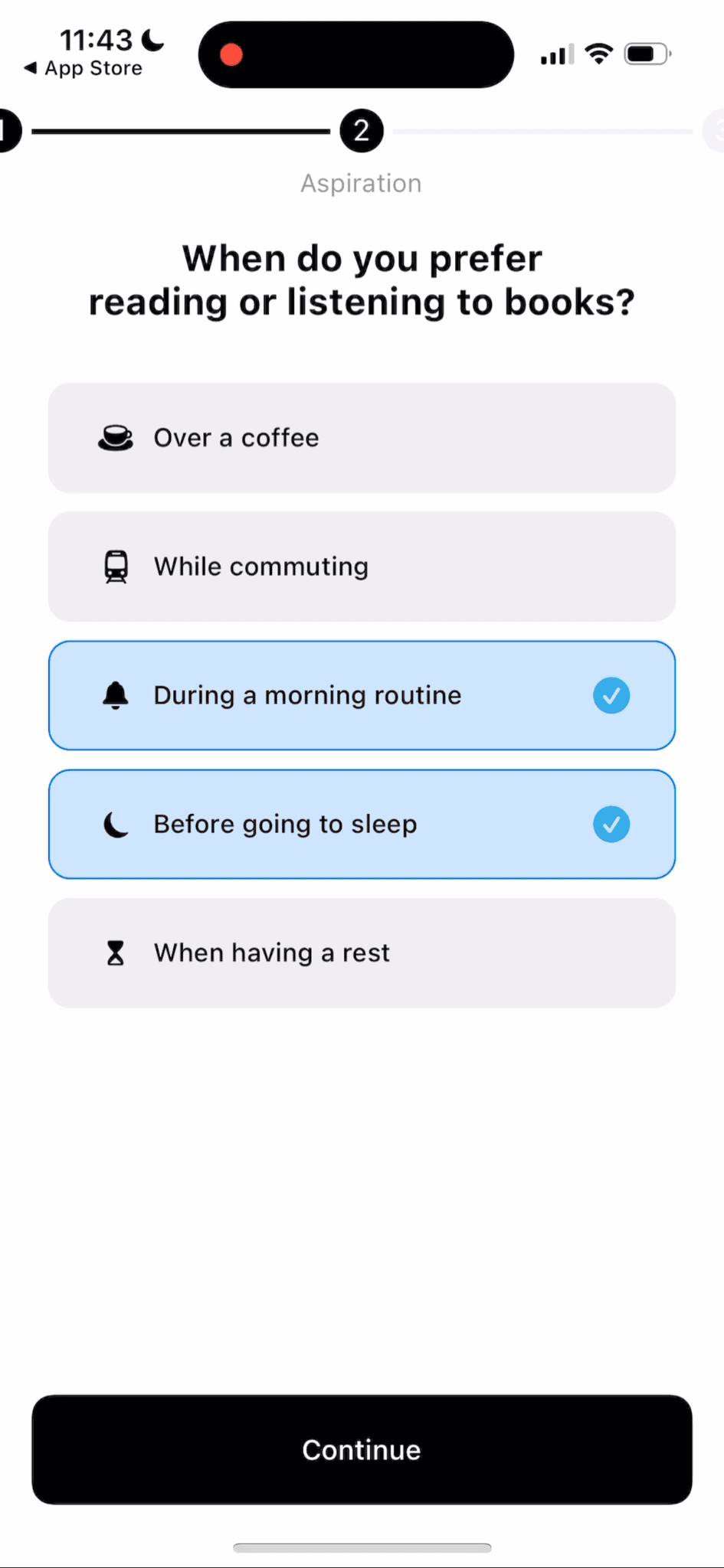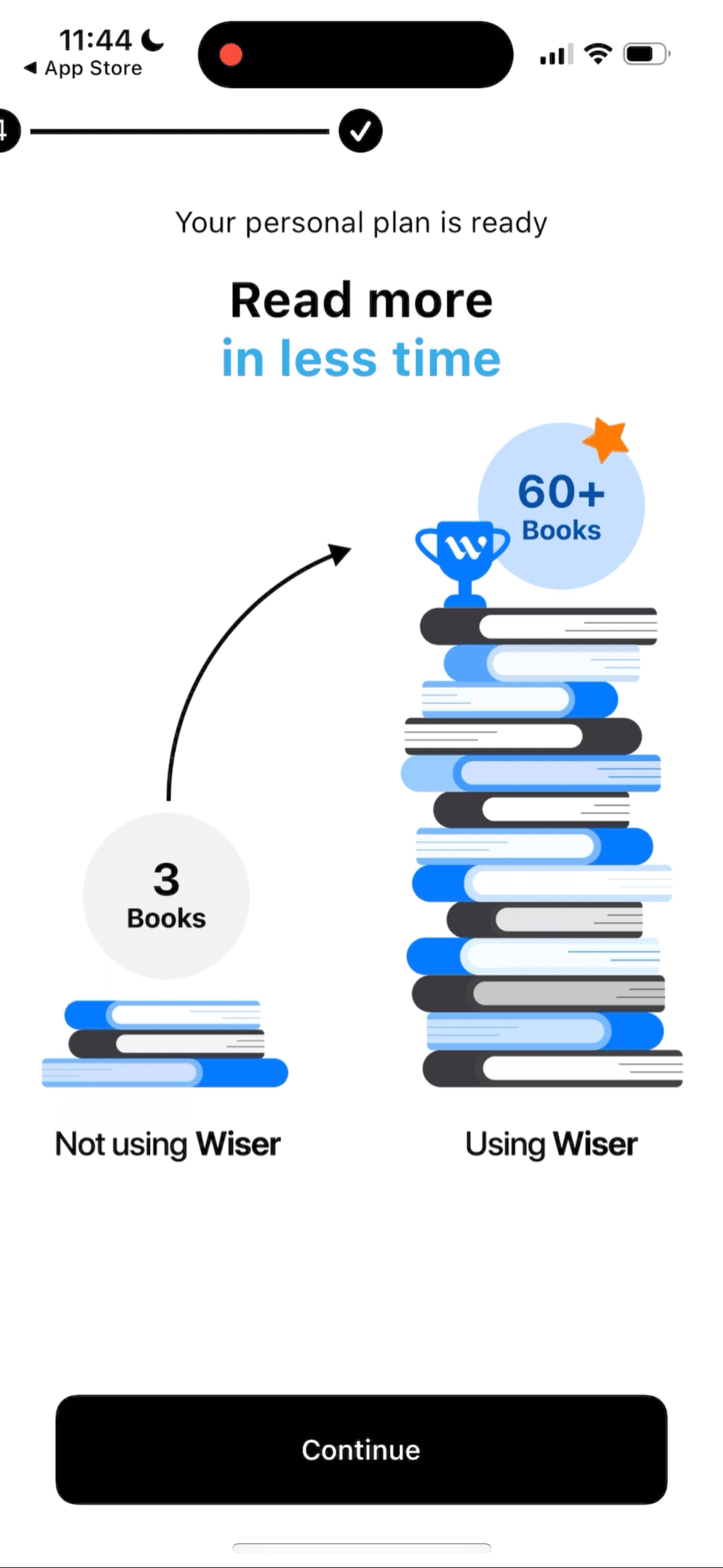 Additionally, we learn about simple feedback mechanisms where we can let users visualise a success state. (400+ books a year just by reading 20 mins a day)
